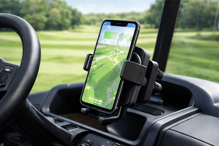 The GOCADDY is a must-have golf cart accessory designed to keep your phone secure, visible, and fully powered throughout your round. This set includes a magnetic phone holder that locks onto the golf cart post for a strong, stable hold—so your phone stays right where you need it for GPS yardages, music, scoring, and hands-free calls.